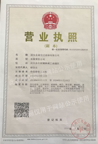 隆信過濾器有限公司是一家生產(chǎn)加工的公司,擁有完整、科學(xué)的質(zhì)量管理體系。隆信過濾器有限公司的誠信、實(shí)力和產(chǎn)品質(zhì)量獲得業(yè)界的認(rèn)可。歡迎各界的朋友指導(dǎo)和業(yè)務(wù)洽談!